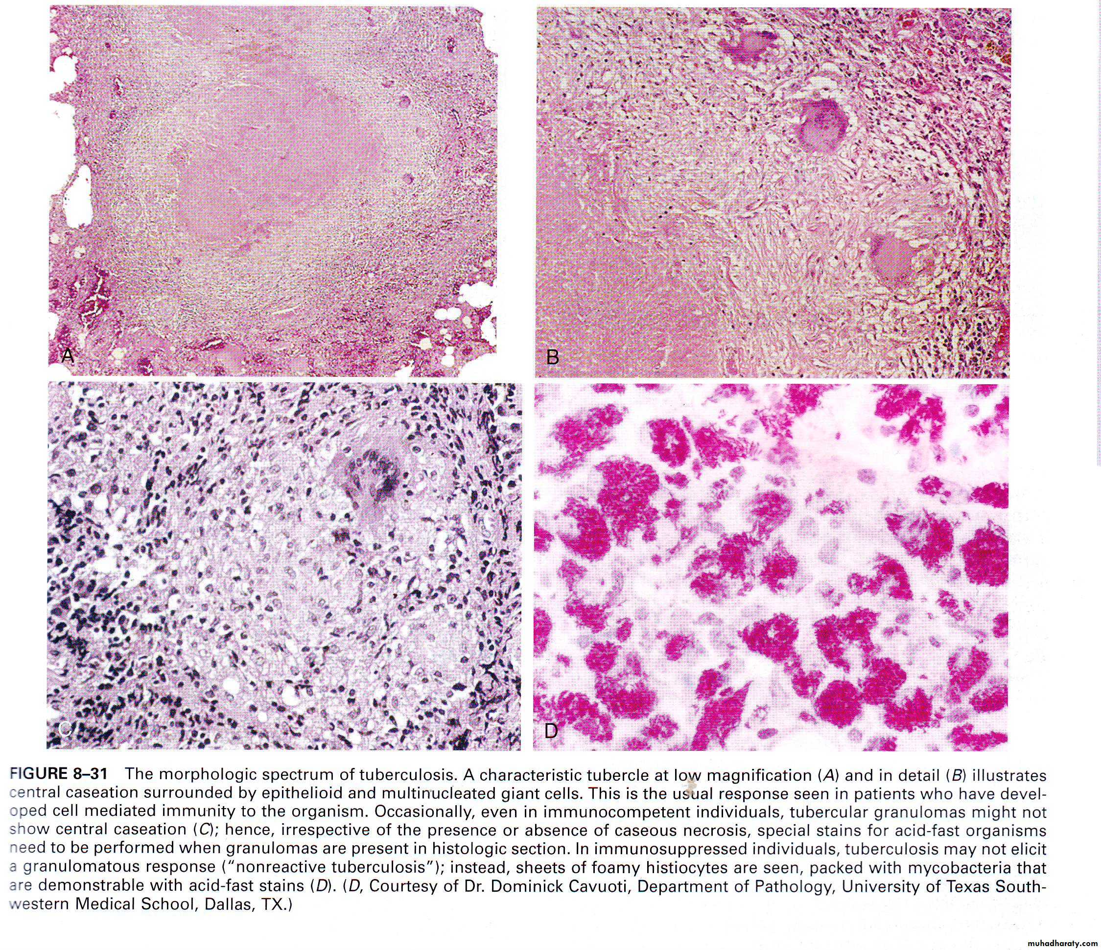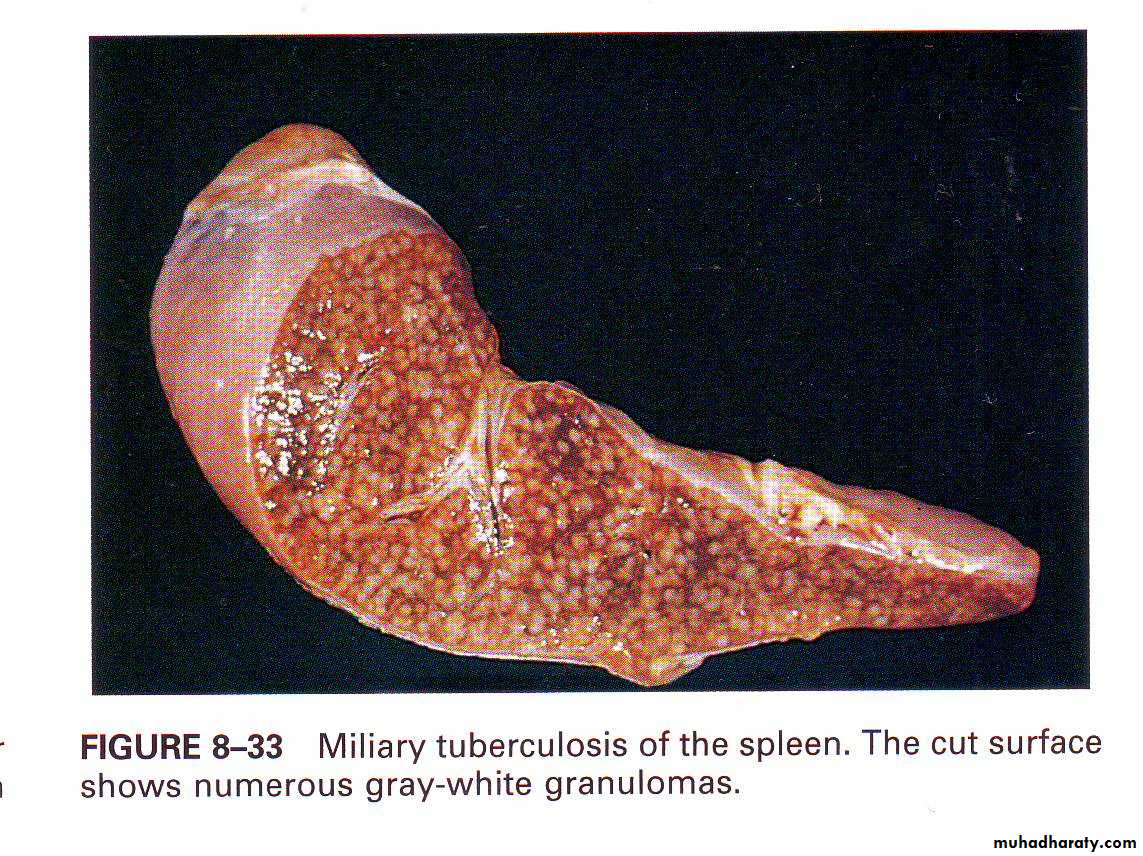 3-Gumma: formation (firm, rubbery, multiple, nodular masses) most commonly found in the liver (hepar lobatum) ,bones & testes.
