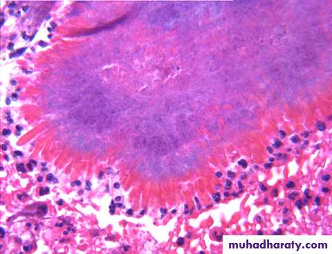 The regional L.N. are usually enlarged & may show non specific acute or chronic lymphadenitis, plasma cells infiltration, or focal epitheliod granuloma.