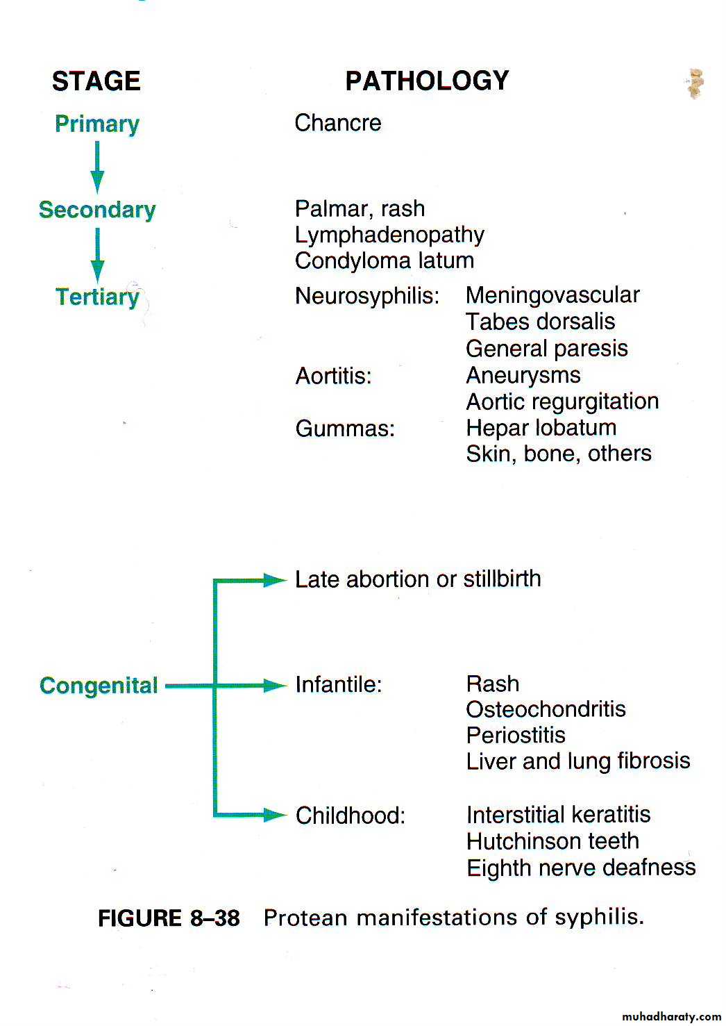 2-CNS neurosyphilis : (meningovascular disease, general paralysis , tabes dorsalis ,dementia & personality changes).