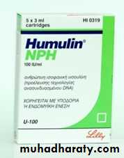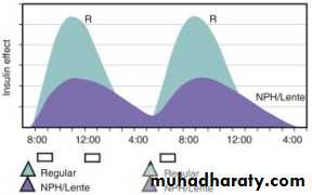 • Intermediate acting insulin: e.g. NPH, detemir, lente