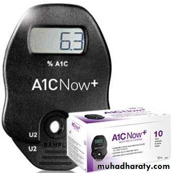 • HbA1c measurement reflects the average blood glucose concentration from the preceding 2-3 mo.• It is recommended that HbA1c measurements be obtained 3-4 times per yr to obtain a profile of long-term glycemic control.