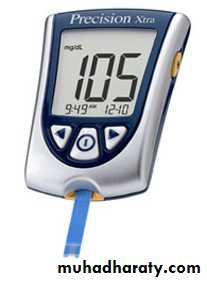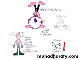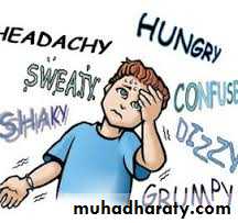 • The child & the family members should aware about the manifestations of hypoglycemia & how to confirm it by measuring blood glucose level.• A source of emergency glucose should be available at all times and places, including at school and during visits to friends. 5-10 g should be given as juice or a sugar-containing carbonated beverage or candy, and the blood glucose checked 15-20 minutes later.