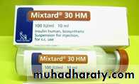 • Several different mixes are available which combine different percent of short or rapid acting insulin with intermediate acting insulin e.g. mixtard.