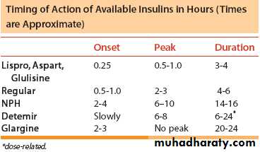 *Detemir can be cosidered either intermediate or long acting, its time of action is dose related.