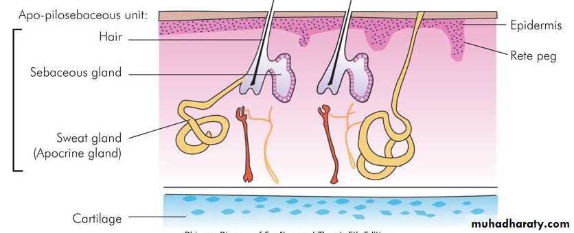 1. Impacted wax or cerumenWax is composed of secretion of sebaceous glands, ceruminous glands(modified sweat glands), hair, desquamated epithelial debris, keratin and dirt.
