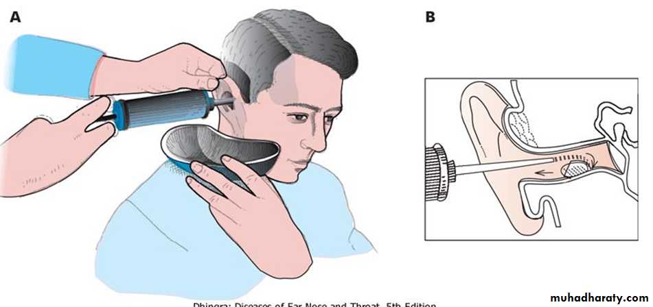 Treatment of wax consists in its removal by syringing or instrumental manipulation(Jobson-Horne probe & suction).