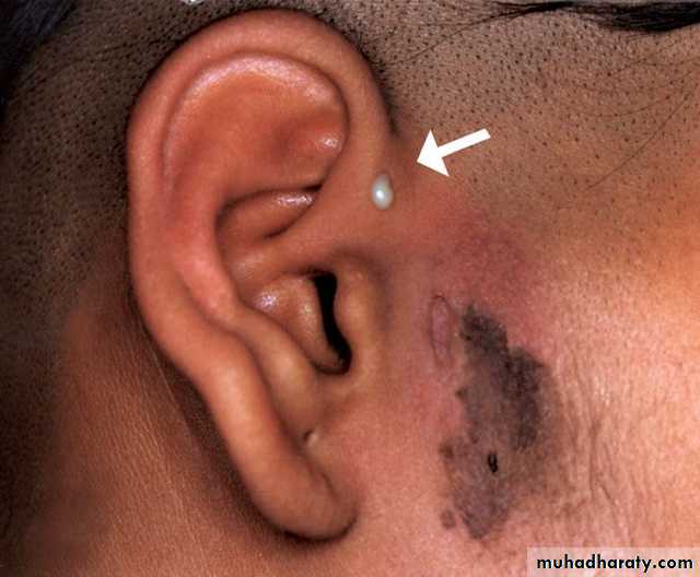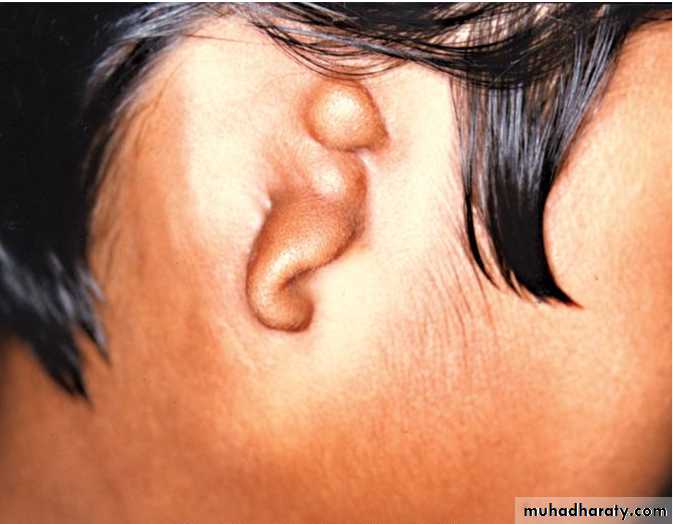 • It may follow trauma or piercing of the ear• Surgical excision of the keloid usually results in recurrence.