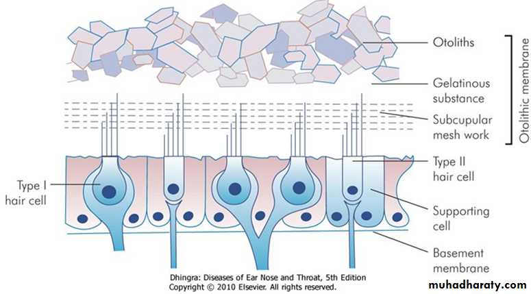They are located in otolith organs (i.e. utricle and saccule). They sense position of head in response to gravity and linear acceleration.