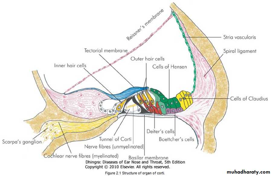 2. Hair cells important receptor cells of hearing & transduce sound into electrical energy.