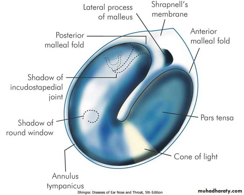 Landmarks of a normal tympanic membrane of right side.