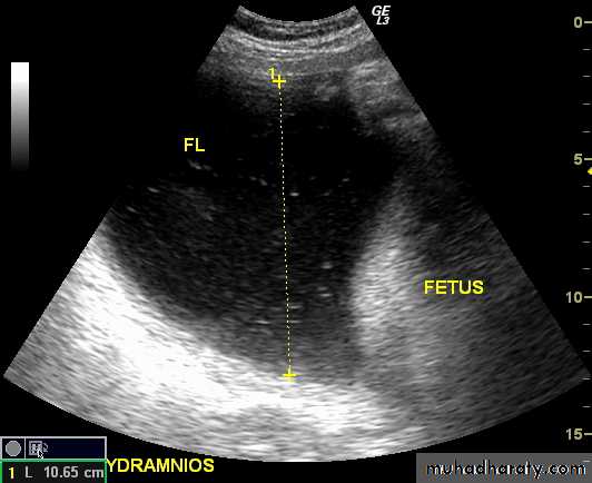 amniotic fluid index (AFI) > 25 cm