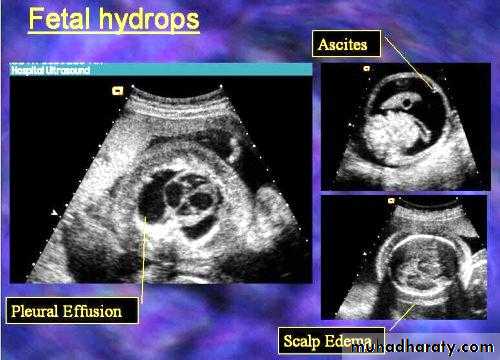Hydrops fetalis is excessive extravasation of fluid due to heart failure, volume overload, decreased oncotic pressure, or increased vascular permeability.Hydrops fetalis is defined as accumulation of fluid +/- edema involving at least two fetal components, which may manifest as