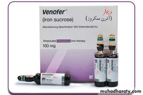 Iron sucrose ( venofir) :Used in iron deficiency anemia , given as slow IV infusion , may cause hypersensetivity reactions therefore testing dose before use is indicated