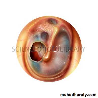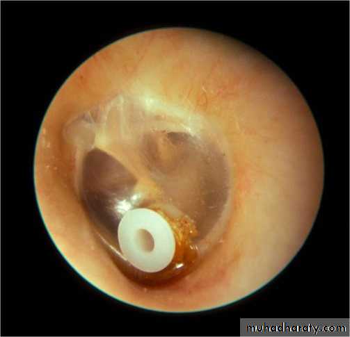 1. Healing: The perforation may be closed with a scar that is invisible.2. Open perforation either dry or moist with deafness: Anterior small perforations are less deafening than larger central ones.