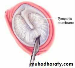 Myringotomy is indicated if there is severe pain not responding to treatment. A swab will be taken for bacteriological study and continuing chemotherapy will depend upon the result. The object of myringotomy is not only pain relief but to facilitate healing with a good firm surgical scar instead of risking a large perforation closed with a thin fragile membrane. The incision of myringotomy is made semilunar on the posteroinferior portion of the TM.Sequelae of ASOM