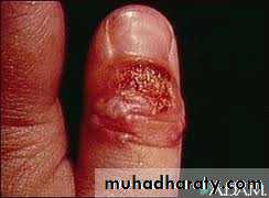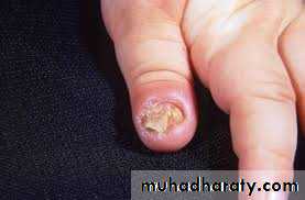 Inflammation of nail bed.