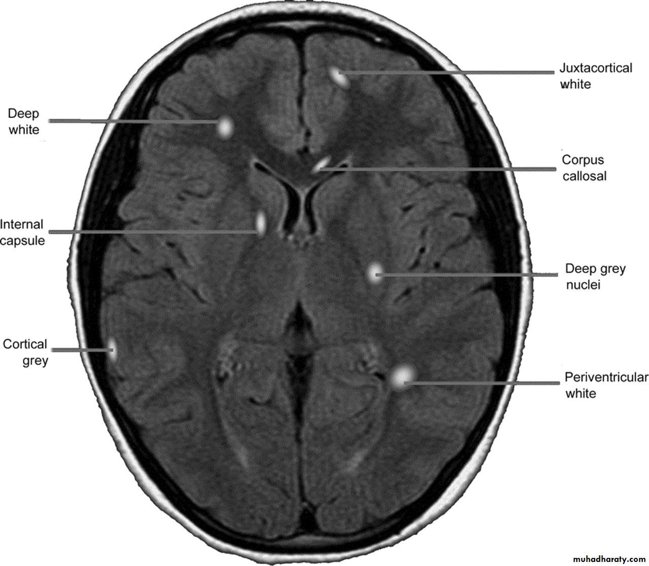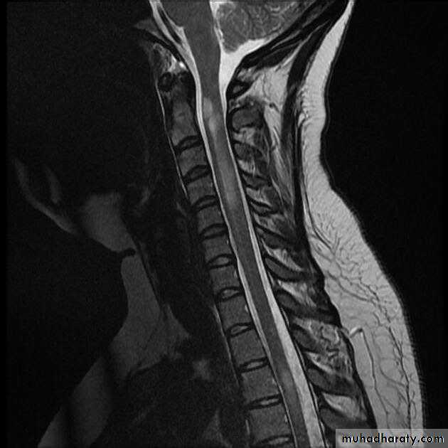 MRI :characteristic abnormalities are found in >95% of patients, although more than 90% of the lesions visualized by MRI are asymptomatic