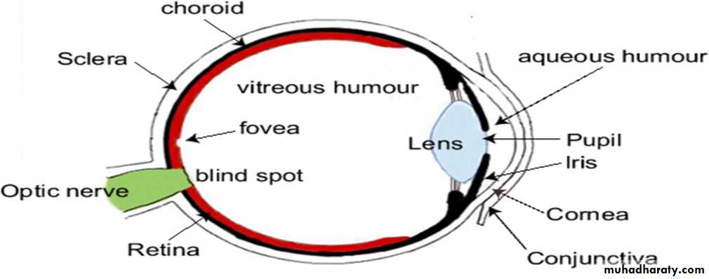Layers of the eye:1-Outer fibrous, sclera (opaque) and cornea (transparent).