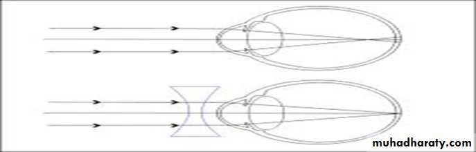 Correction of Myopia by Use of a concave spherical lens, which will diverge rays