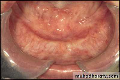decrease in thickness, increase permeability and so decrease tissue tolerance to appliances. presence of hyperkeratosis flabby tissues in denture wearers.4. Gingiva