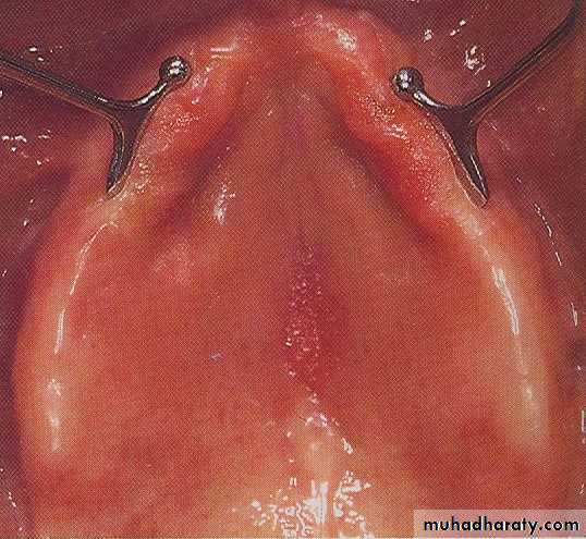 • Split- reservoir complete dentures containing salivary substitutes.• 2. Complete dentures with metal palatal portion.