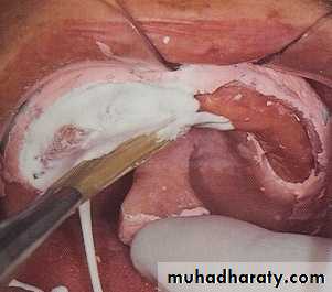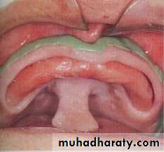 Sufficient relief and escape hole drilled in special tray opposite to flabby tissue to ensure relief of pressure over this area and proper load distribution.A sectional impression technique (Two part impression technique)
