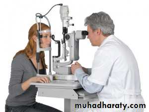3- slit lamp bio microscopy : combined with a condensing lens to neutralize the corneal refractive power .