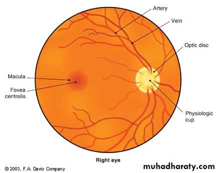 Optic disc and physiological cup:Area where the optic nerve and the blood vessels enter the eye