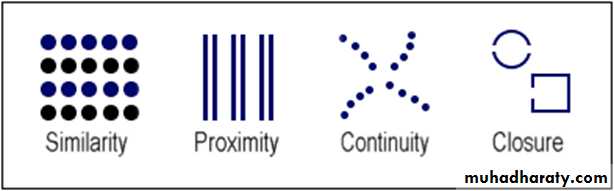 The Gestalt principles of grouping include four types: similarity, proximity, continuity, and closure.