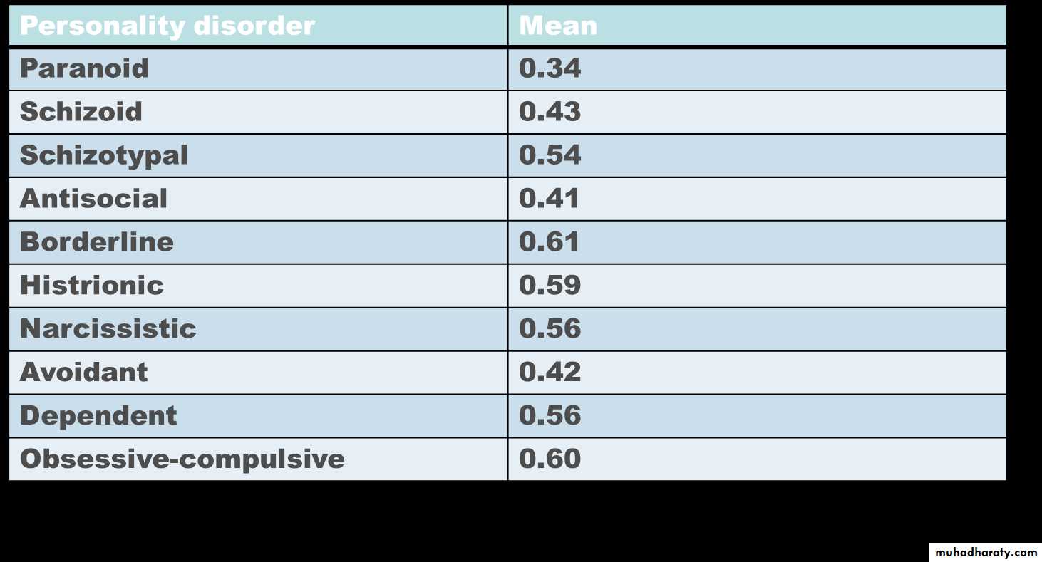 Studies have found that in Norway compared to US, Germany and UK avoidant personality 3-4X more prevalent, dependent personality 2-3X more prevalent and schizoid is 2X more prevalent. Borderline is <½ as frequent and antisocial is ½ has prevalent.Pattern exhibits increased internalization personality disorders are prevalent and externalization disorders are rarer.