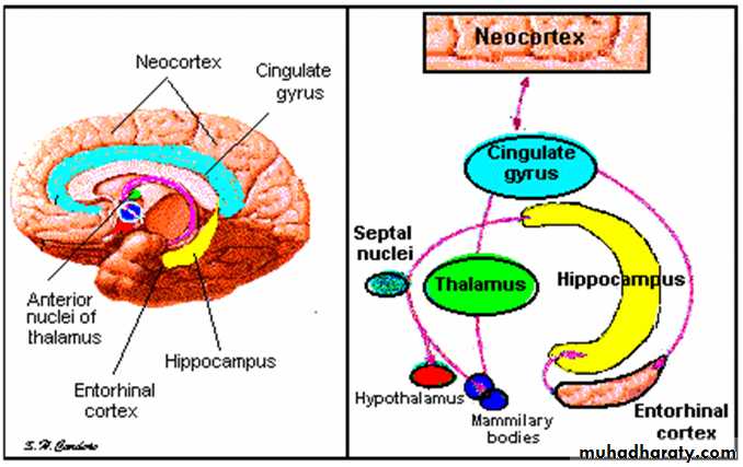 Is the neuronal circuit that controls the emotional behavior, drive &motivation.The limbic system :is a set of brain structures including the hippocampus, amygdala, anterior thalamic nuclei, septum, limbic cortex and fornix, which seemingly support a variety of functions including emotion, behavior, long term memory, and olfaction
