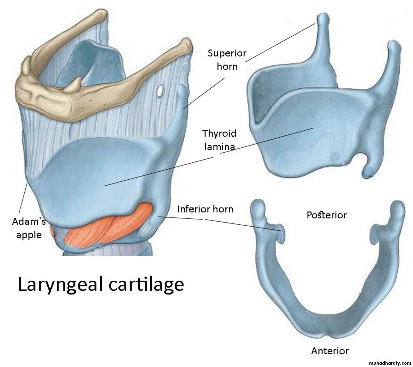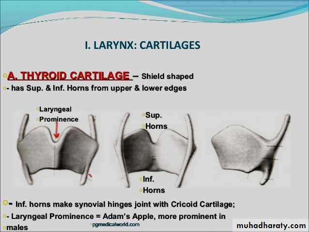 They join together anteriorly (Adam’s apple).