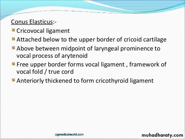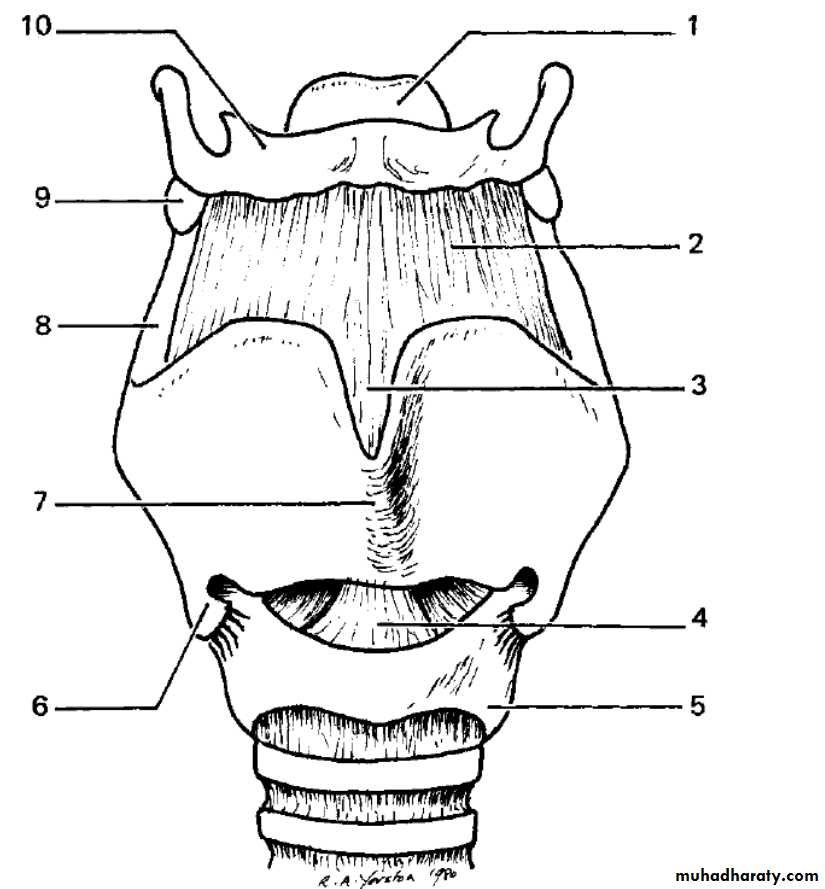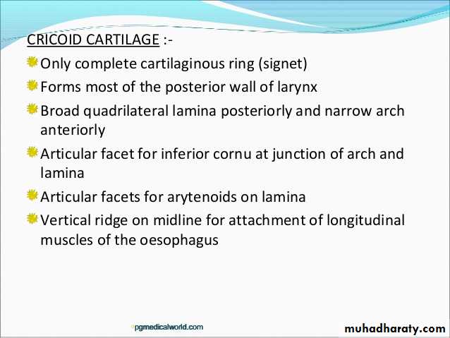 Each lamina has superior, inferior & posterior borders.There are 2 prolongations from the superior & inferior borders (thyroid cornu).