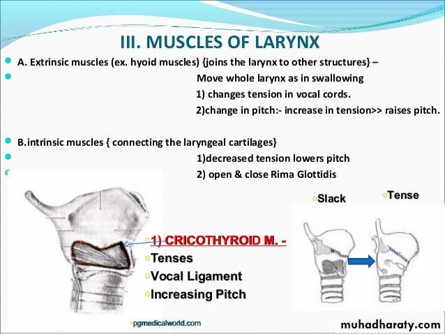 1- The external laryngeal nerve:- supplies the1- Cricothyroid muscle (external tensor of vocal cords).