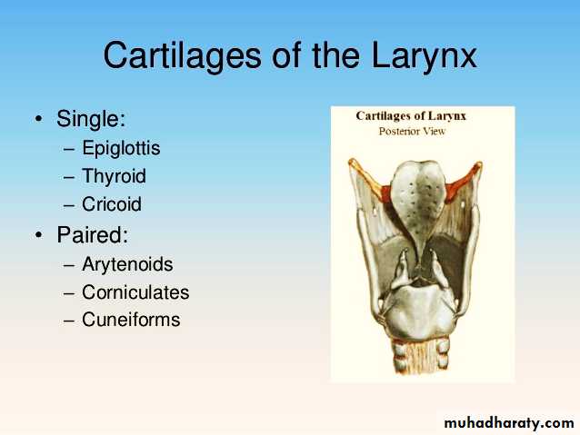 It is made up of 9 cartilages:- 3 paired & 3 unpairedPaired