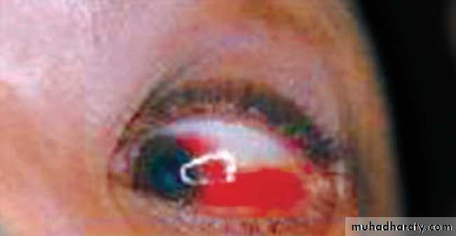 4. Subconjunctival hemorrhage will be observed at the outer canthus.
