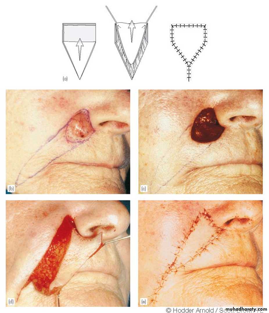 • Its the common type of flap used for reconstructing facial defects• length to width ratio of up to 2 : 1 in the face without risk of flap loss or skin necrosis.