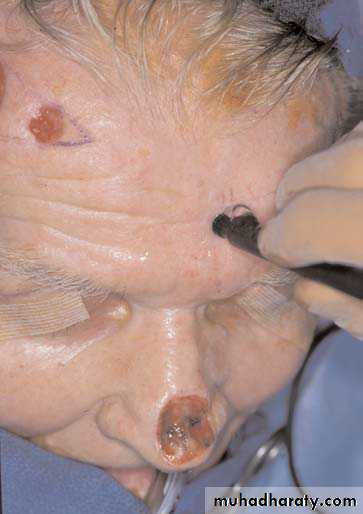 • sites – forehead, brow, cheek.