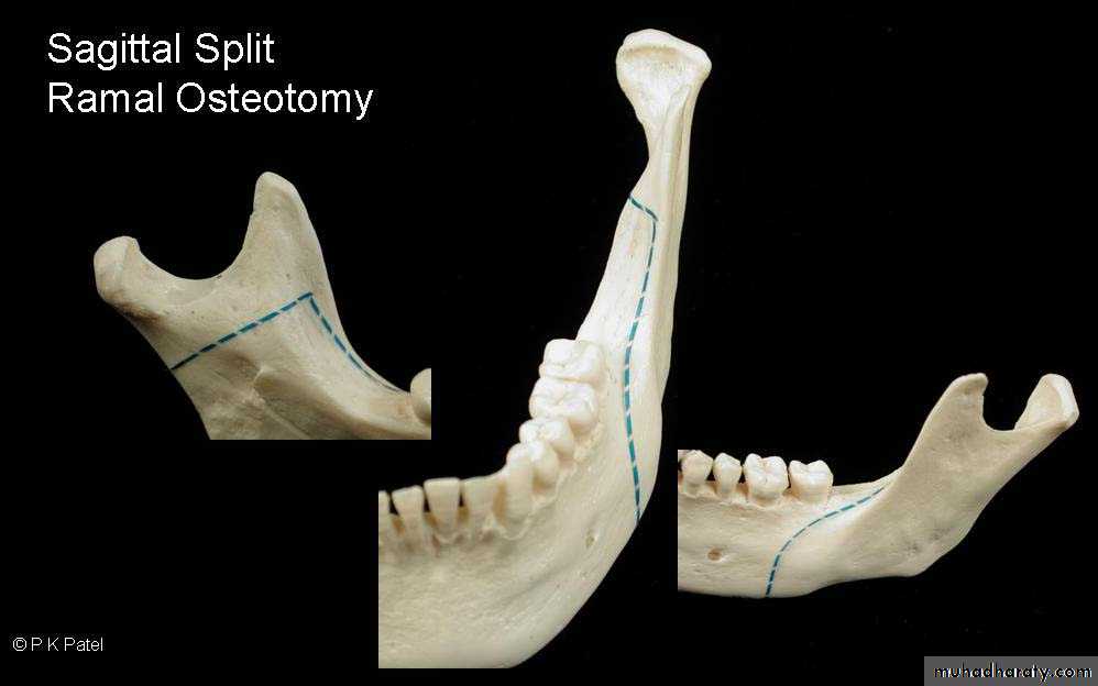 Ramus osteotomy ( sagittal split osteotomy, vertical subsigmoid osteotomy, c osteotomy, inverted L ostetomy).