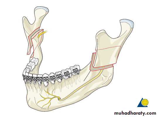 Correction of mandibular retrusion. Usually can be combined with genioplasty carried out simultaneously, alternative procedure for mandibular advancement are the inverted L osteotomy and C ramus osteotomy.Correction of mandibular protrusion (prognathism).if the set back movement is graeter than 20 mm bimaxillary surgery should be considerd.