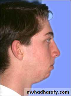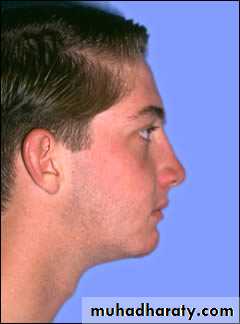 From the front the chin may be asymmetric with deviation to the right or left .may be receded or protruded in profile view.