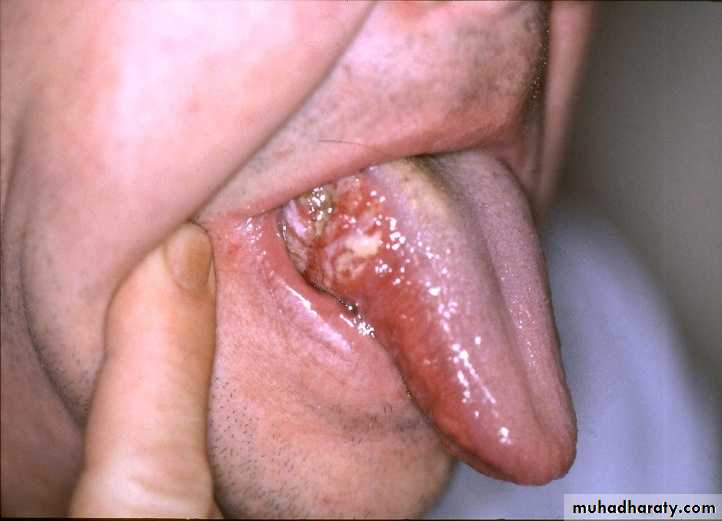 • 60% from the anterior 2/3rd of tongue and remainder from base• Etiology :- chronic physical and dental trauma