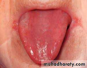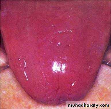 • Tongue appears smooth, bald and red with glazed appearance it may be tender and having burning sensation