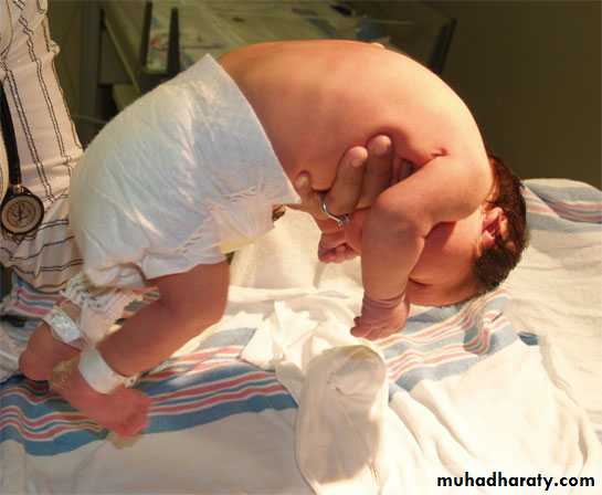 -The midpoint of the body is umbilicus unlike pubic symphysis in the adult.