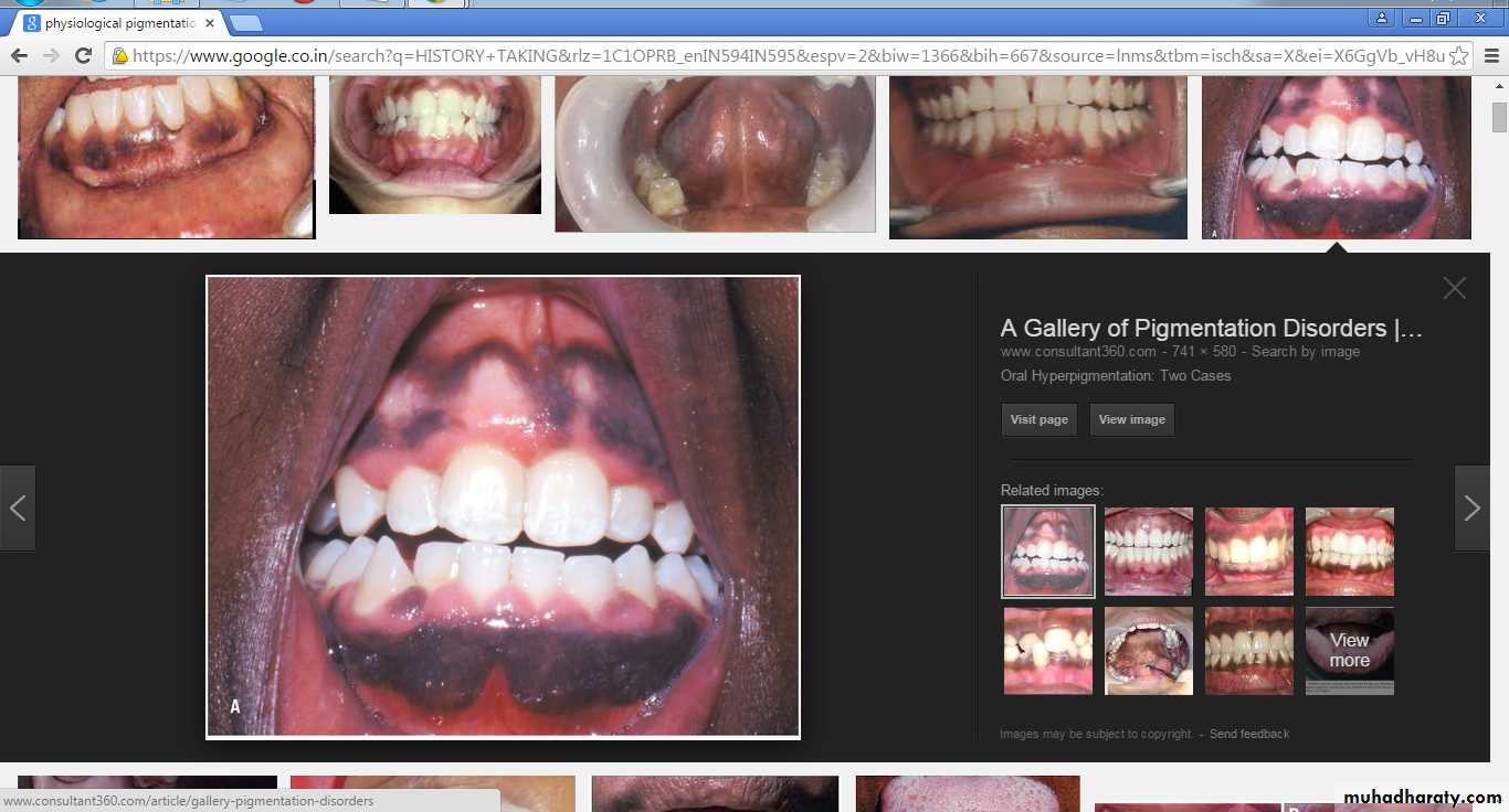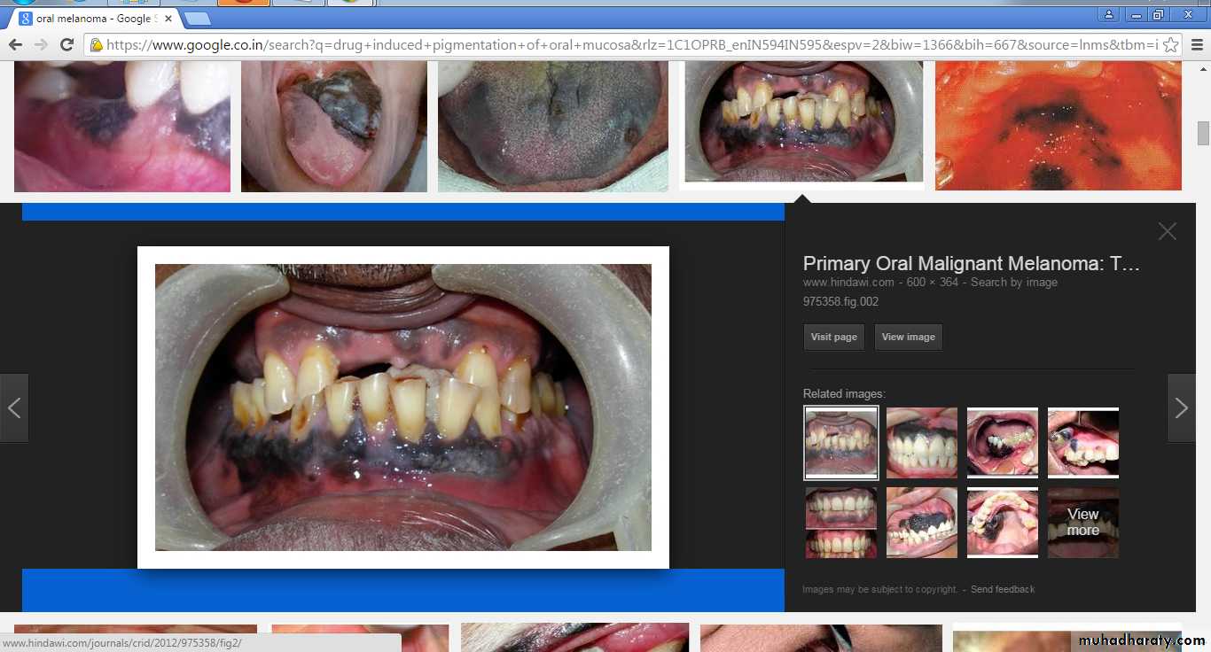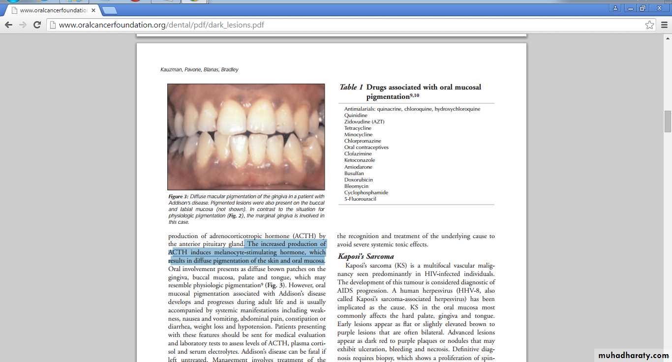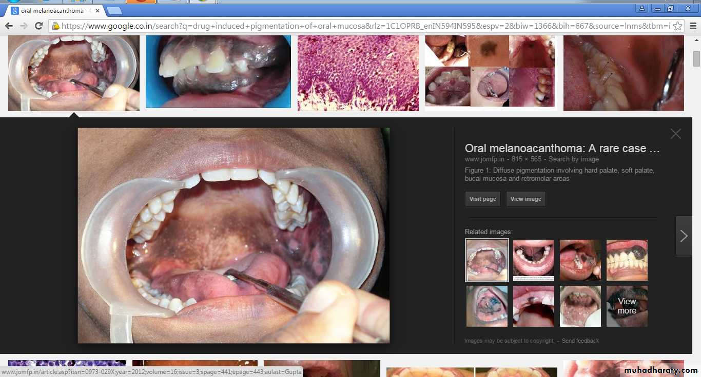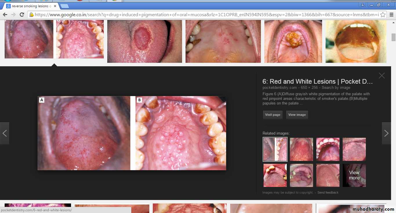 Smoker’s MelanosisIncreased production of melanin, provide a biologic defence against the noxious agents present in tobacco smoke