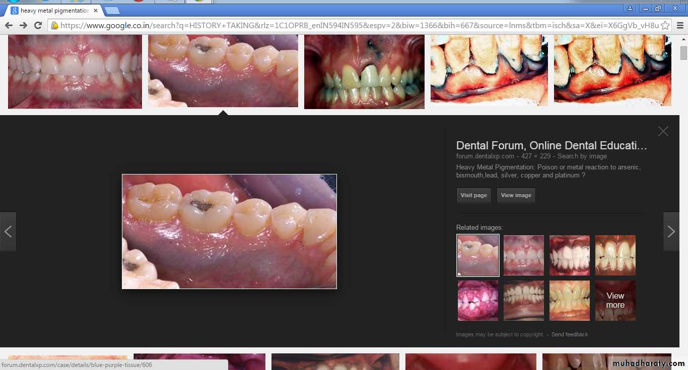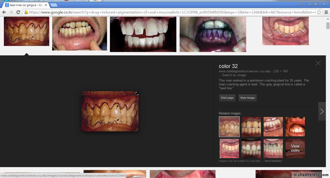 Lead, bismuth, mercury, silver, arsenic and gold ingestion and occupational exposure leads to pigmentation