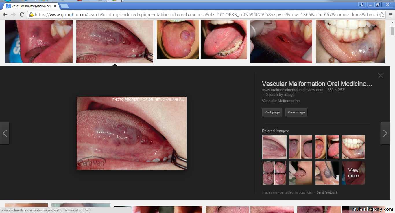 VMIn the mouth, the tongue is the most common site of occurrence, and the clinical features are similar for hemangioma and vascular malformation