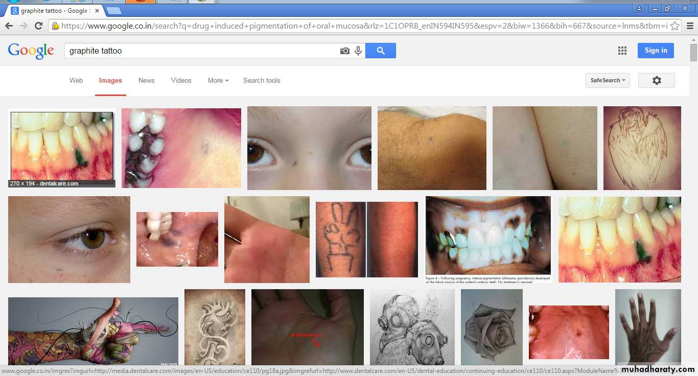 Exogenous pigmentation is commonly due to foreign-body implantation in the oral mucosa.Endogenous pigments include melanin, hemoglobin, hemosiderin and carotene.