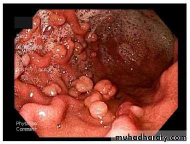 intestinal hamartomatous polyposis and an increased risk of cancer in many organs, including the small intestine, colon, stomach, pancreas, breast and genital tractGastric polyps