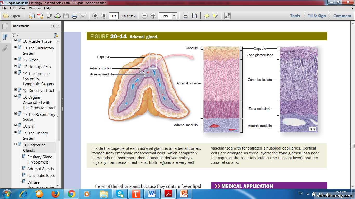 Zona Reticularis (10%): smaller cells in a network of irregular cords
